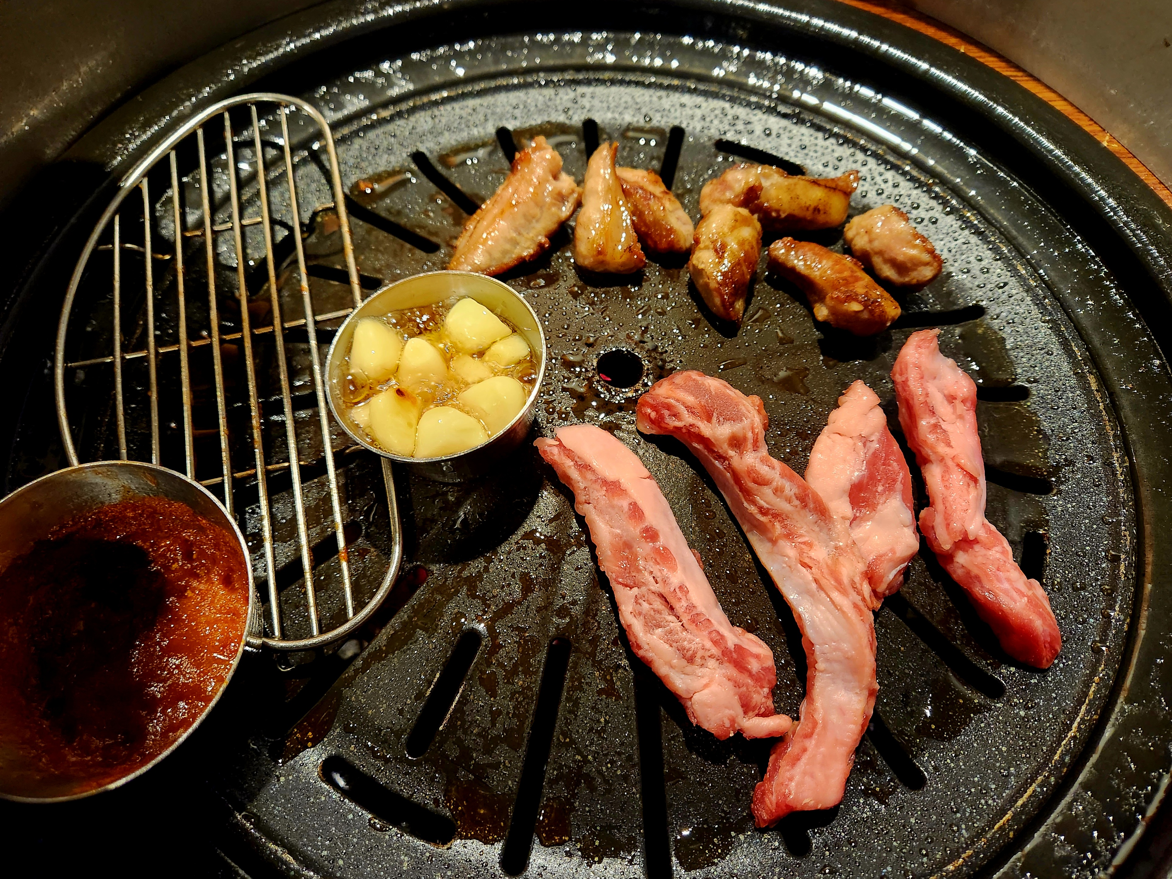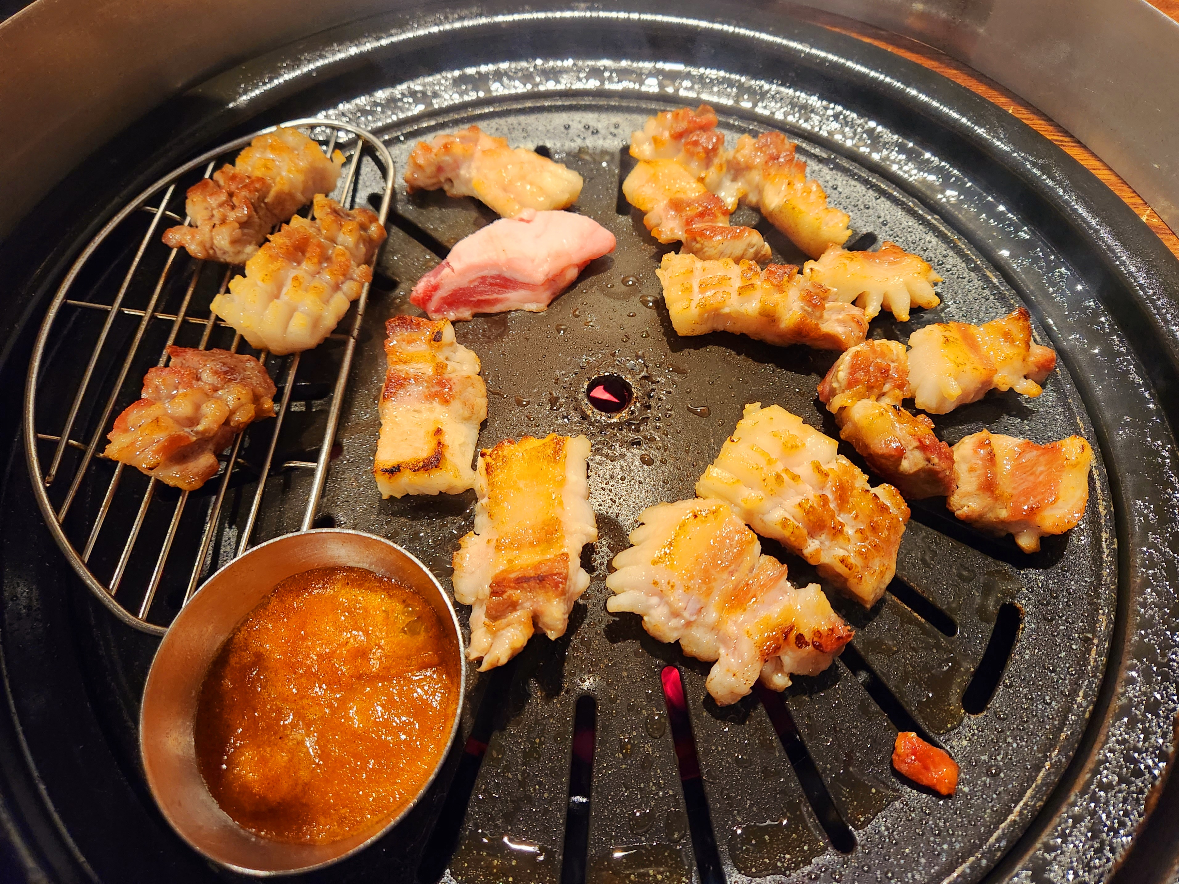 흐름 끊기지 않기 위해서 육갑꽃돼지도 불판에 올려줬습니다~