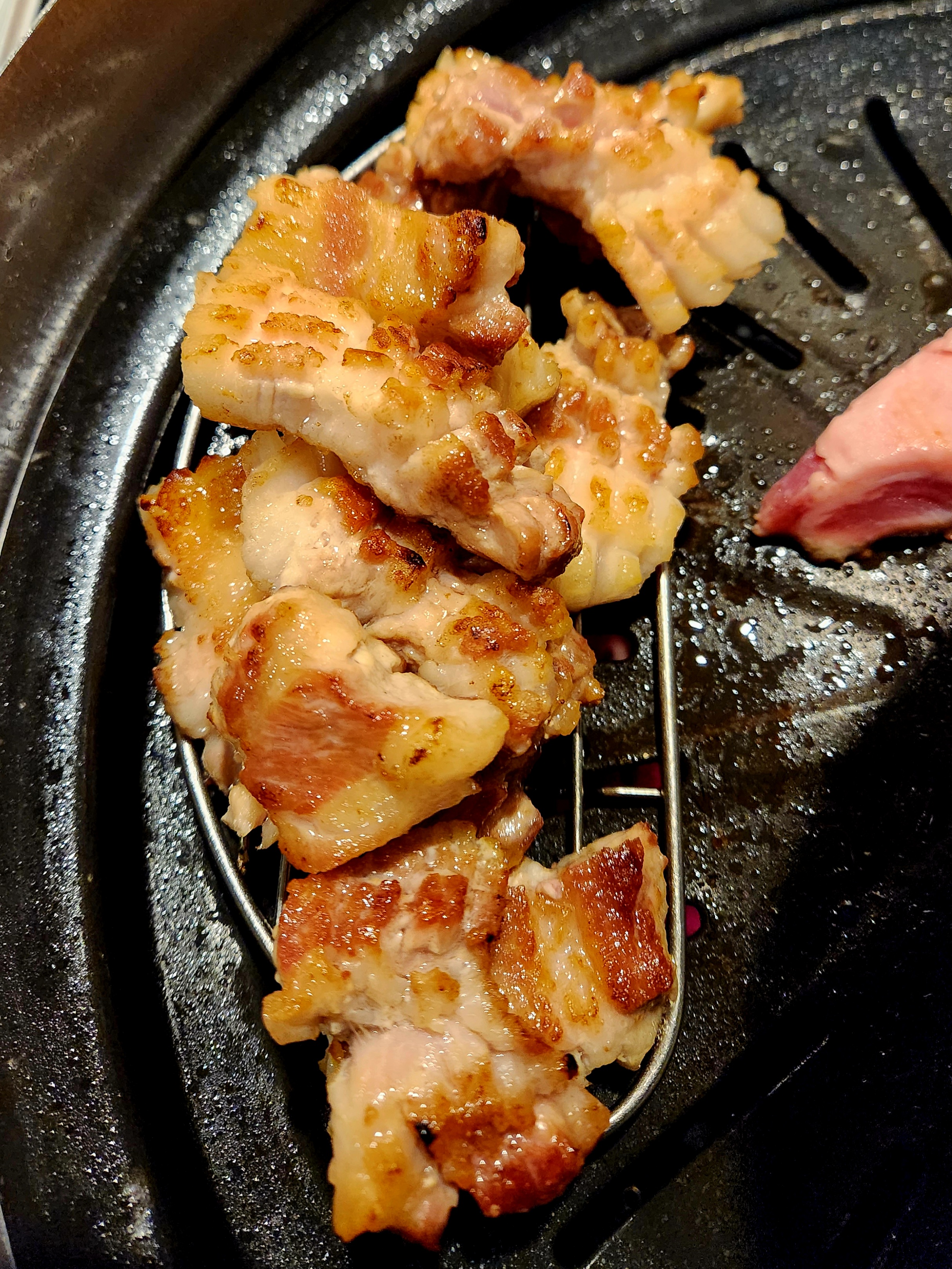 익는 동안 삼겹살 클리어 했고요~ 타이밍 좋게 맛있게 익은 육갑꽃돼지~