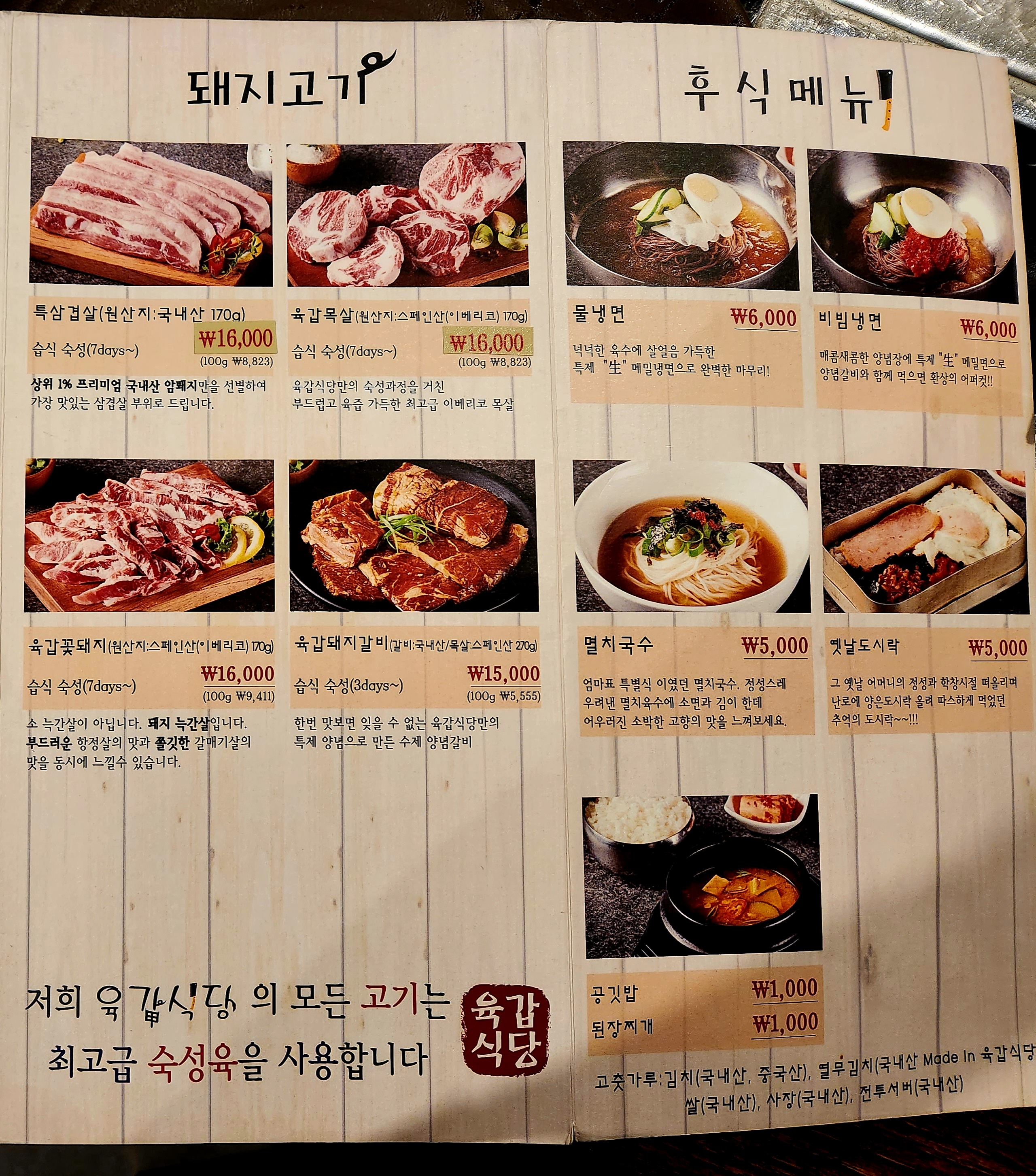 저희는 삼겹살 1인분과 육갑꽃돼지 1인분을 주문했습니다~ 주문 시 삼겹살에 칼집을 넣어줄지 물어보셔서 넣어달라고 말씀드렸습니다~