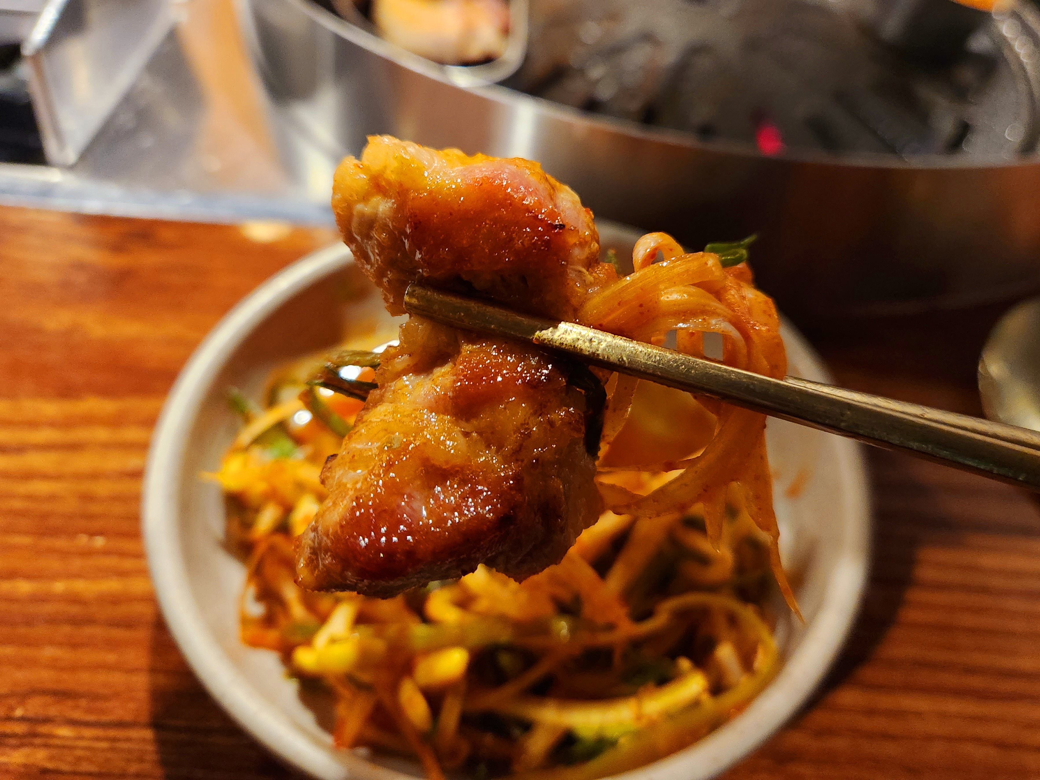 막 같은 거 때문에 질기지 않을까 했는데 쫀득쫀득을 넘어 쫜득쫜득하더라고요~ 잡내 없고 맛있었지만 개인적으로 삼겹살이 훨~씬 맛있었습니다~ 다시 간다면 삼겹살만 먹을 거 같네요~ ☺️