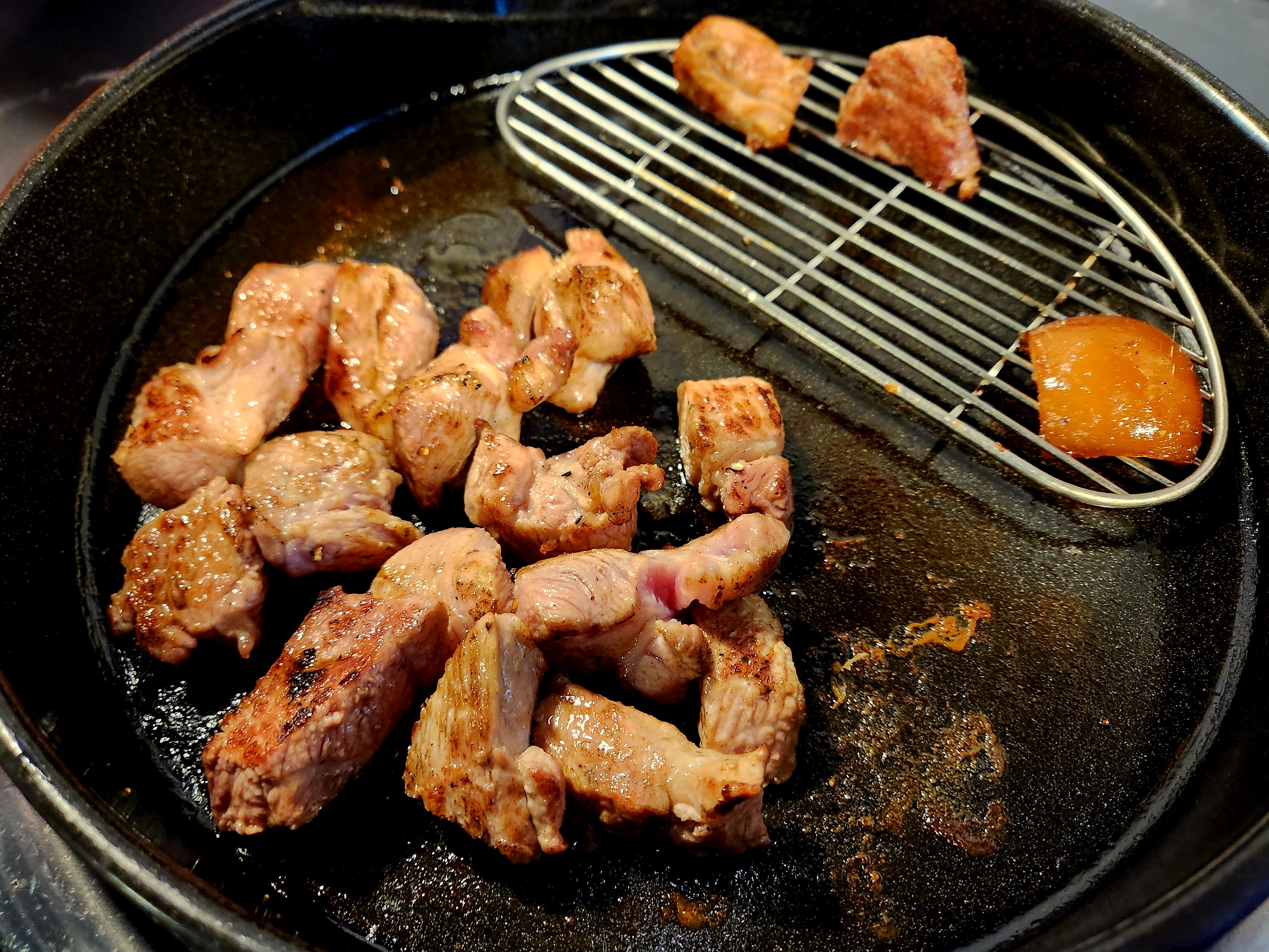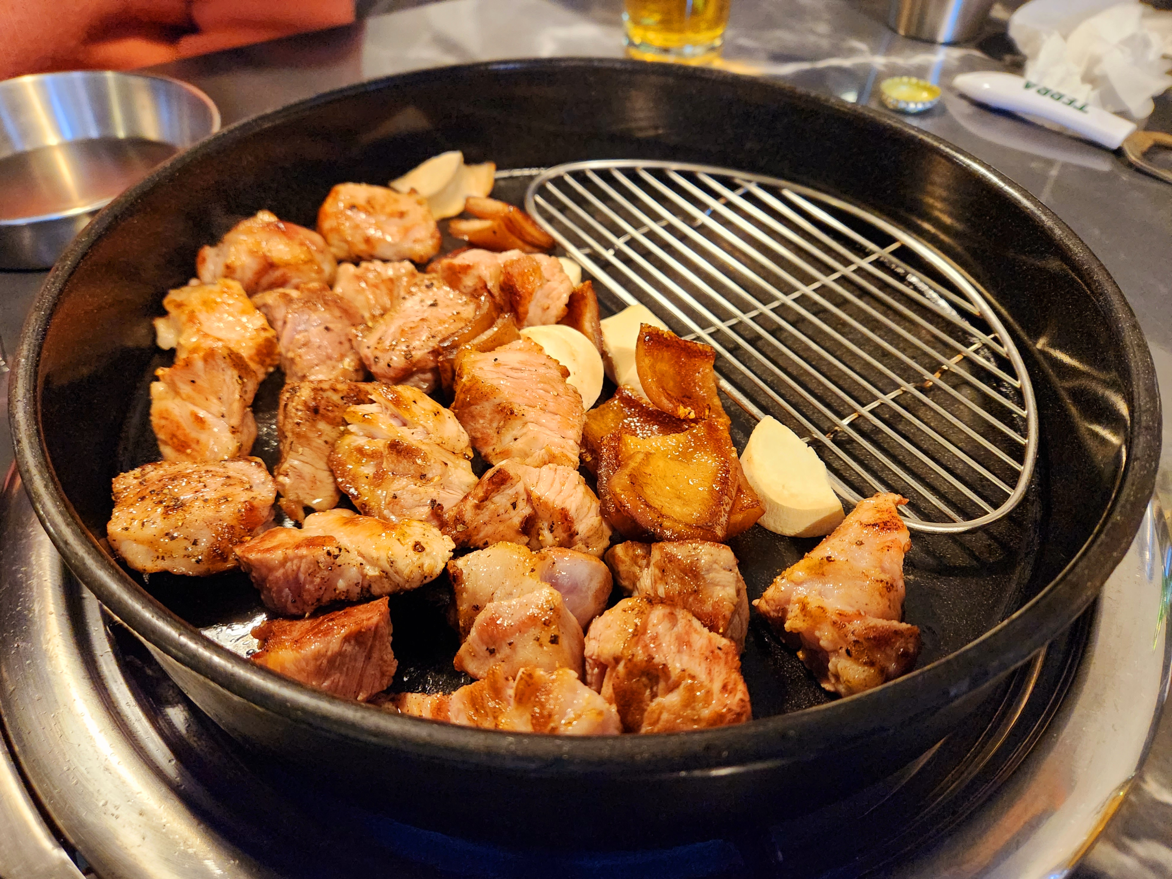 고기는 거의 익혀 나와서 조금만 더 익혀서 먹으면 되고 껍데기와 새송이 버섯도 같이 나오는 건 좋았습니다~
