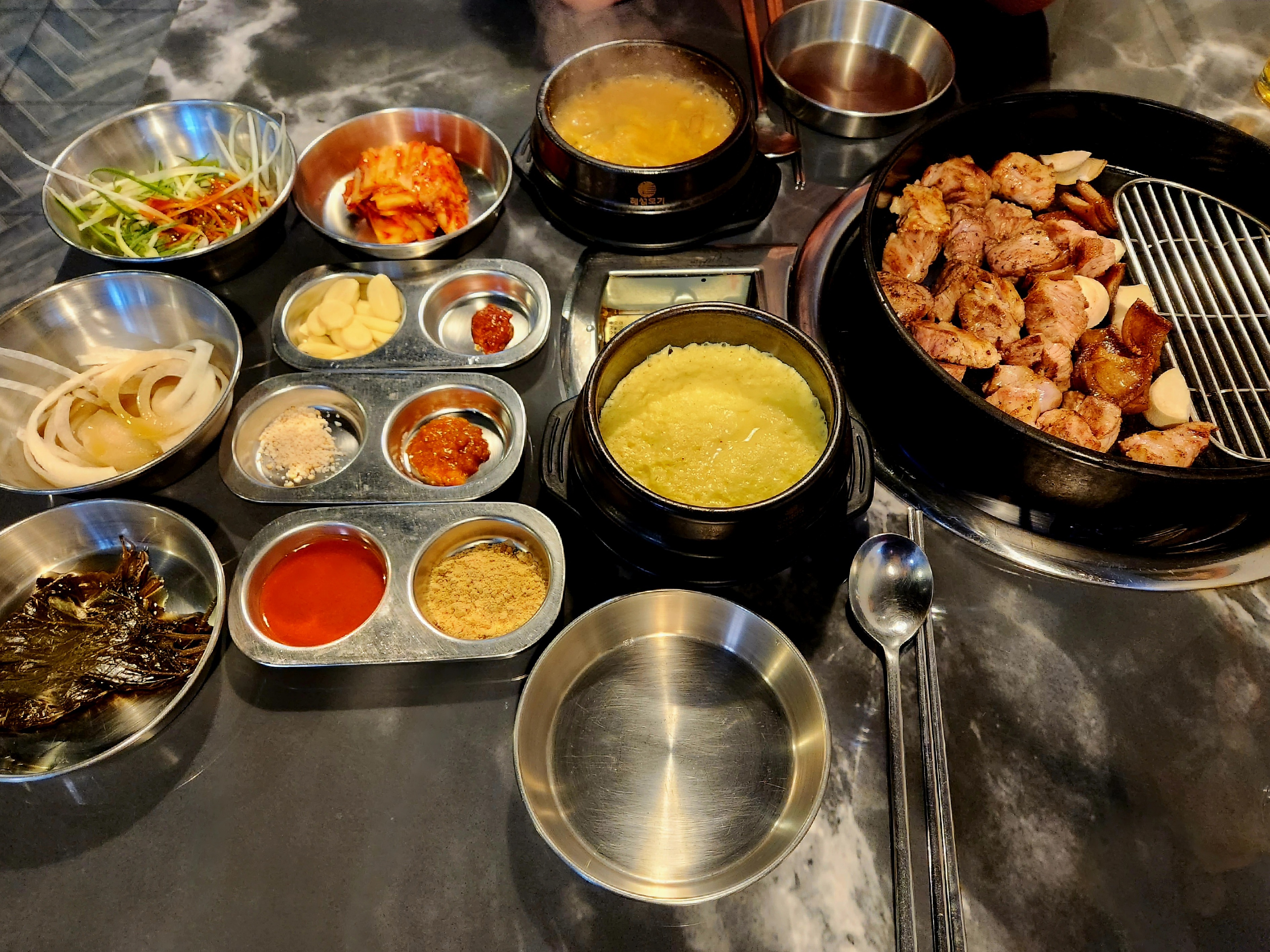 기본찬들이고요~ 찍어 먹을 소스 종류도 다양하고 게다가 제가 좋아하는 갈치속젓이 나와서 좋았습니다~ 😄