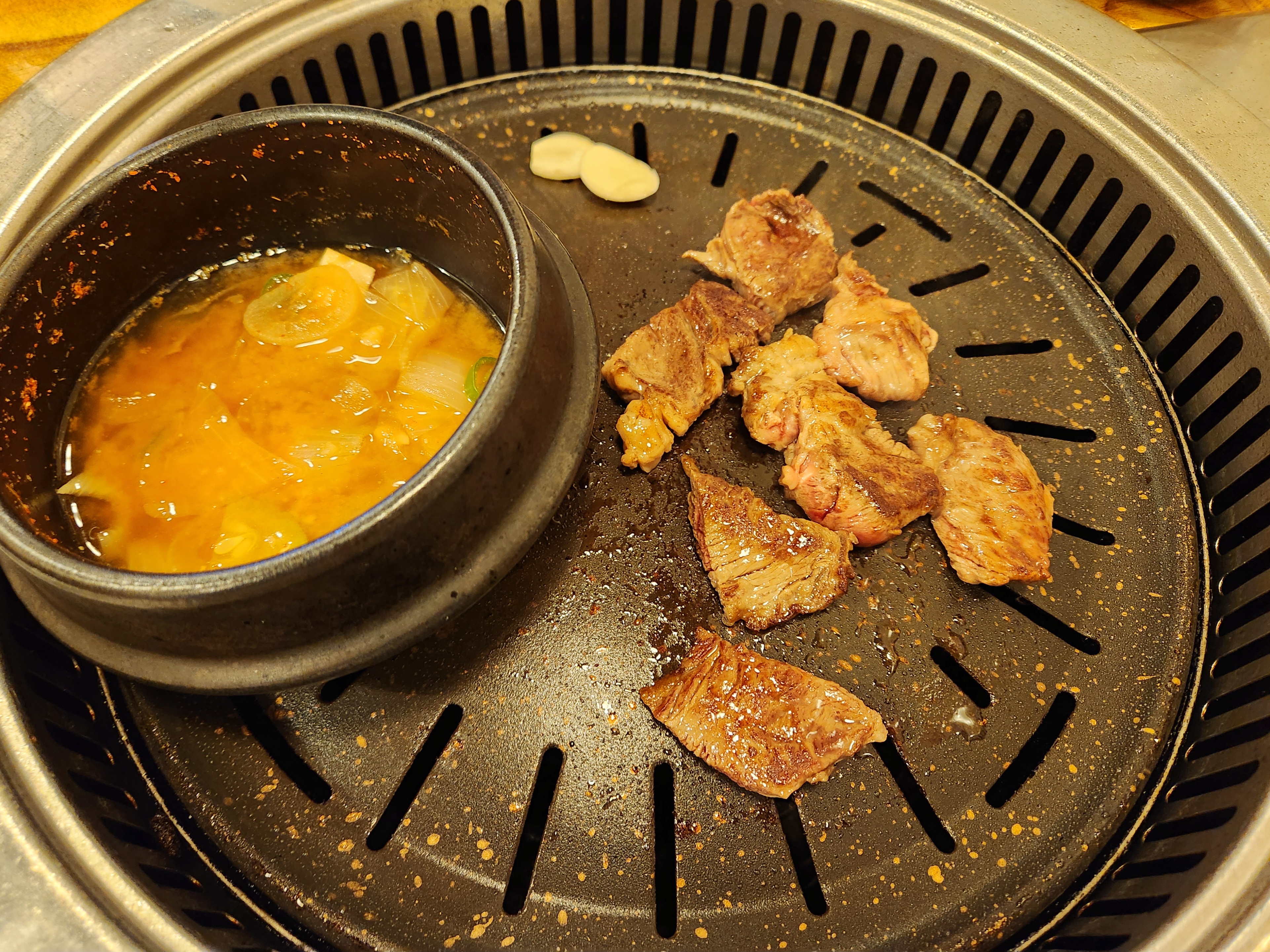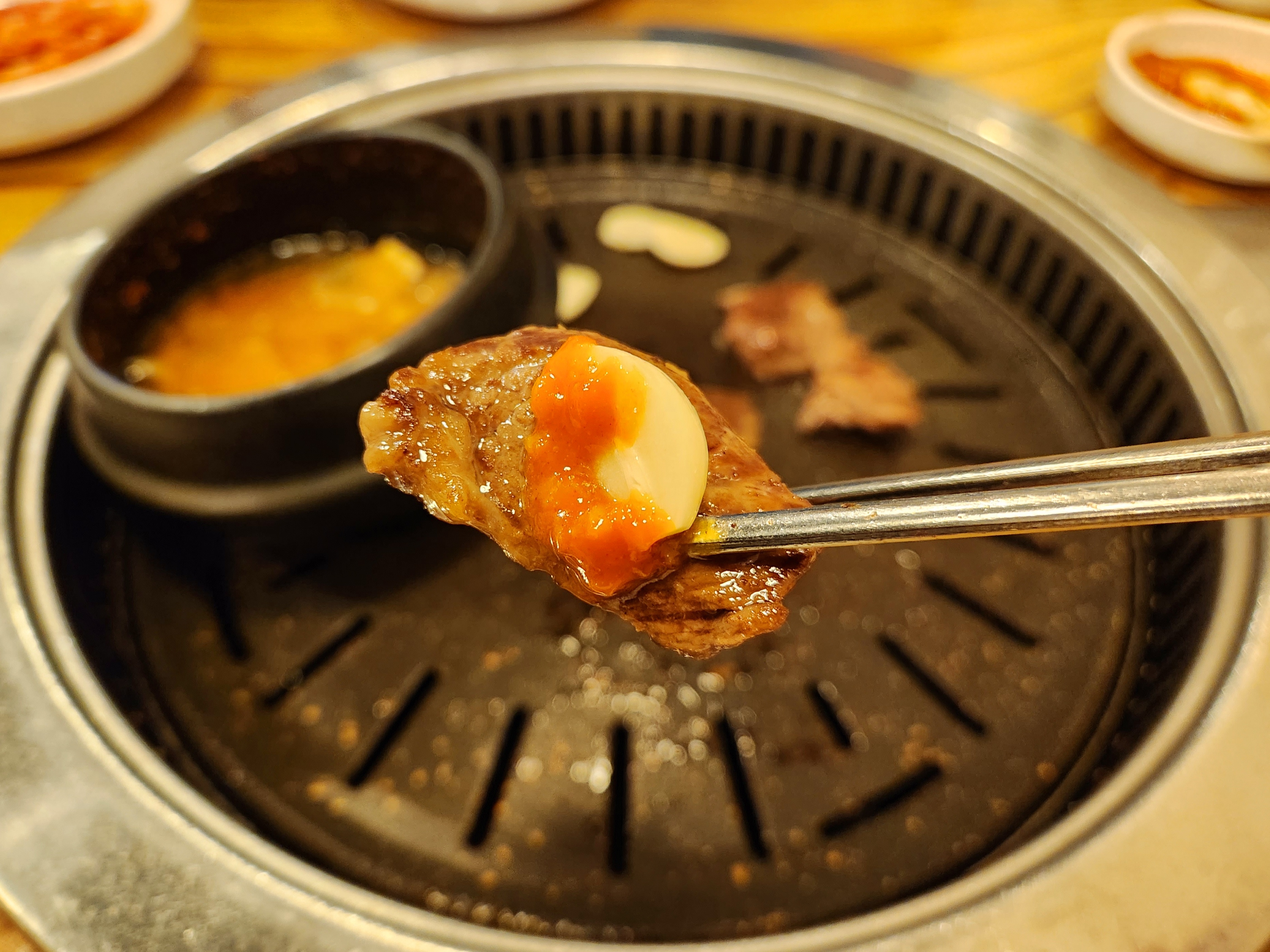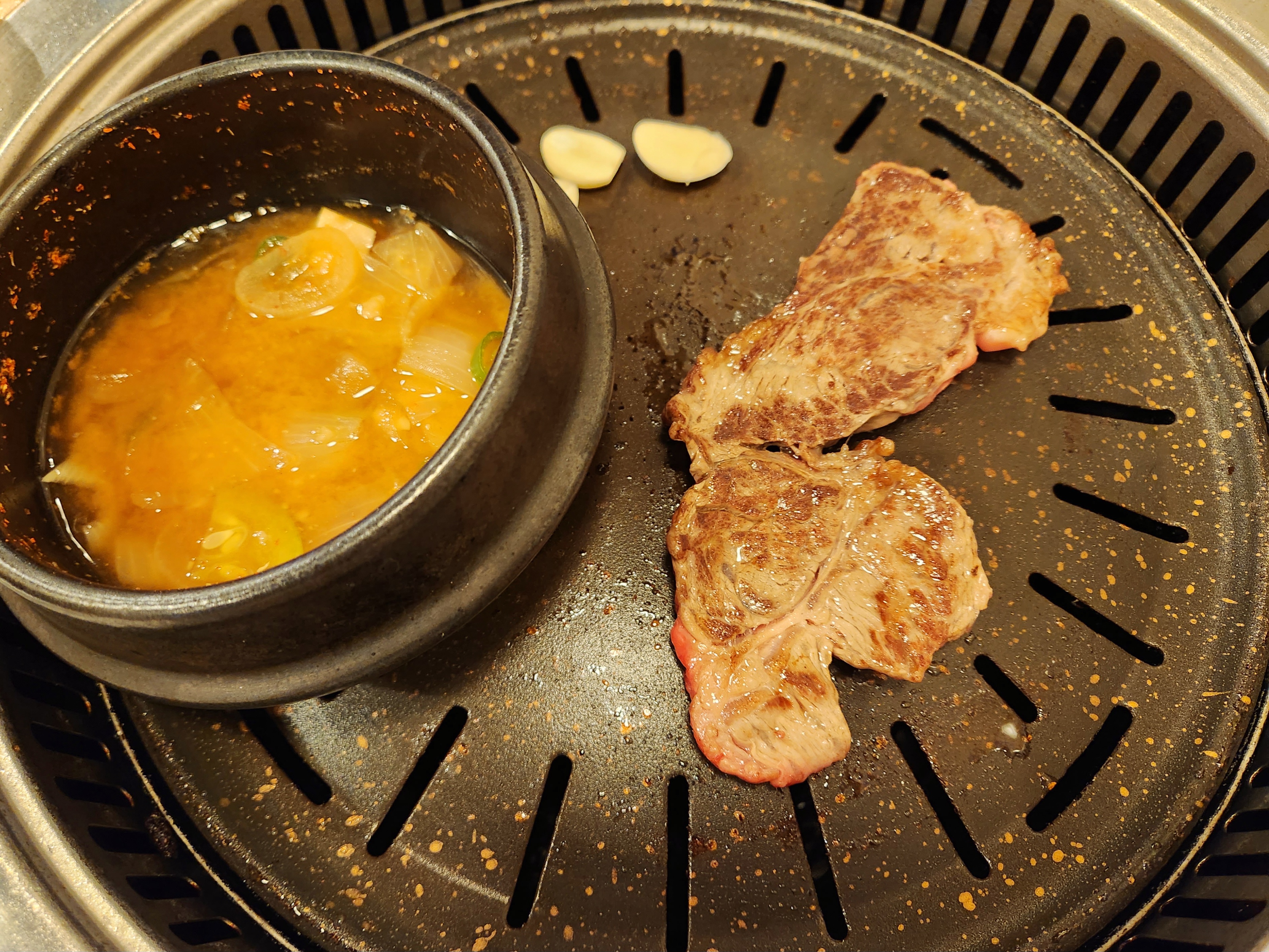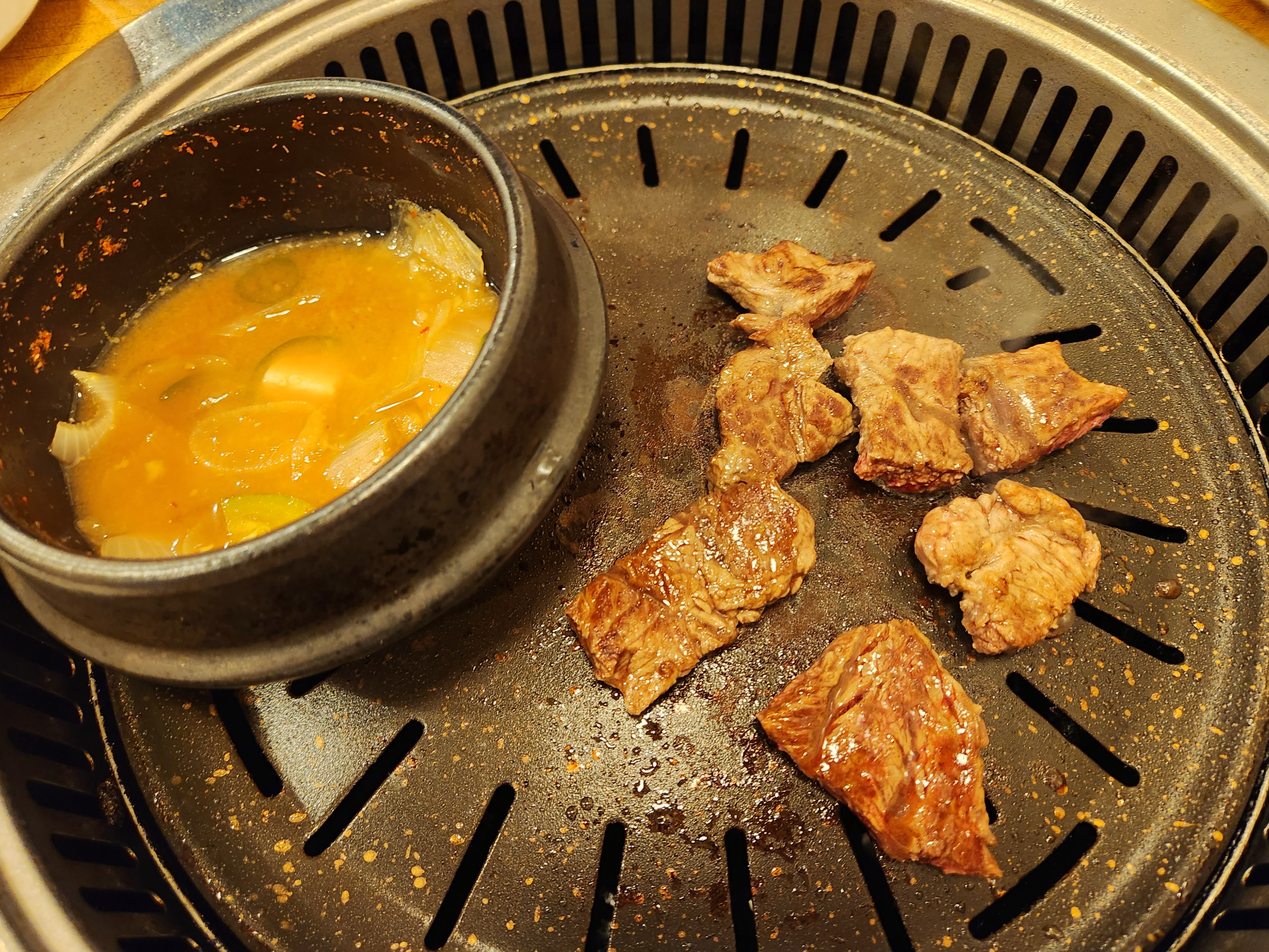처음 구운 등심은 조금 질기고 고소한 맛도 거의 없었지만 두 번째 구운 등심은 부드럽고 고소해서 괜찮았습니다~