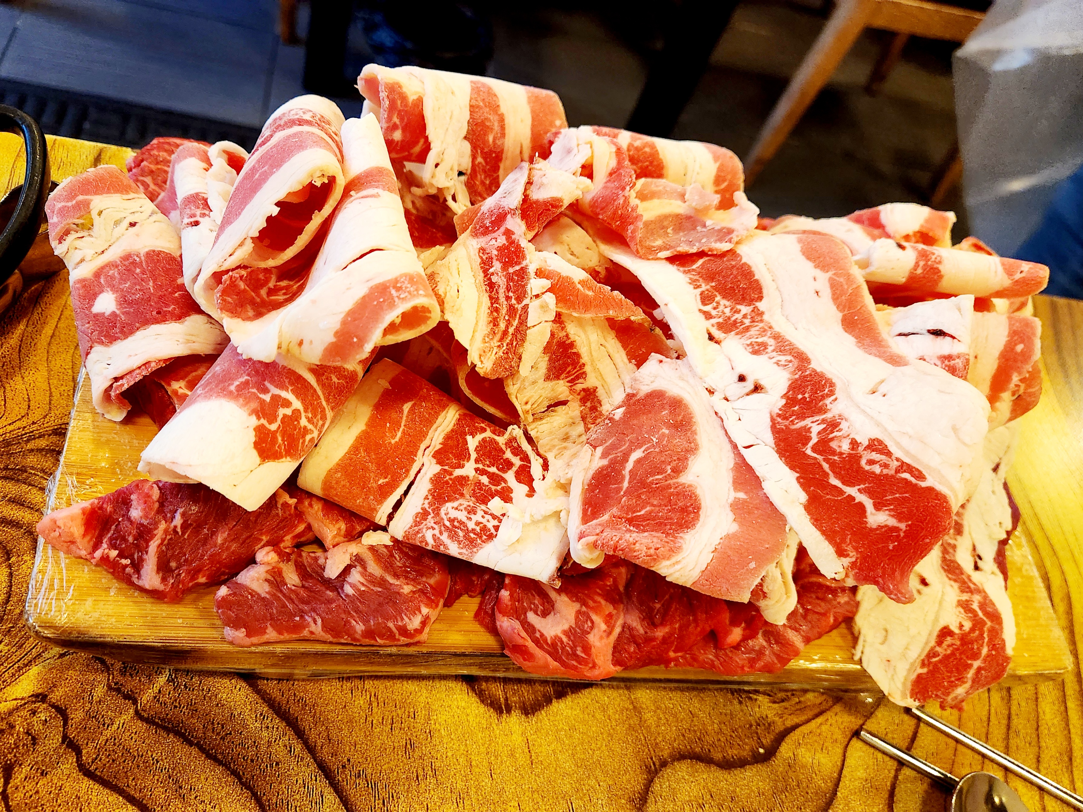 살치살과 부채살은 딱 한 덩이만 주시고 대부분 등심이더라고요~ 사진이 좀 잘 나왔는데 실제로는 마블링이 거의 없는 상태라 고기가 그리 맛있어 보이지 않아서 좀 아쉬웠습니다~