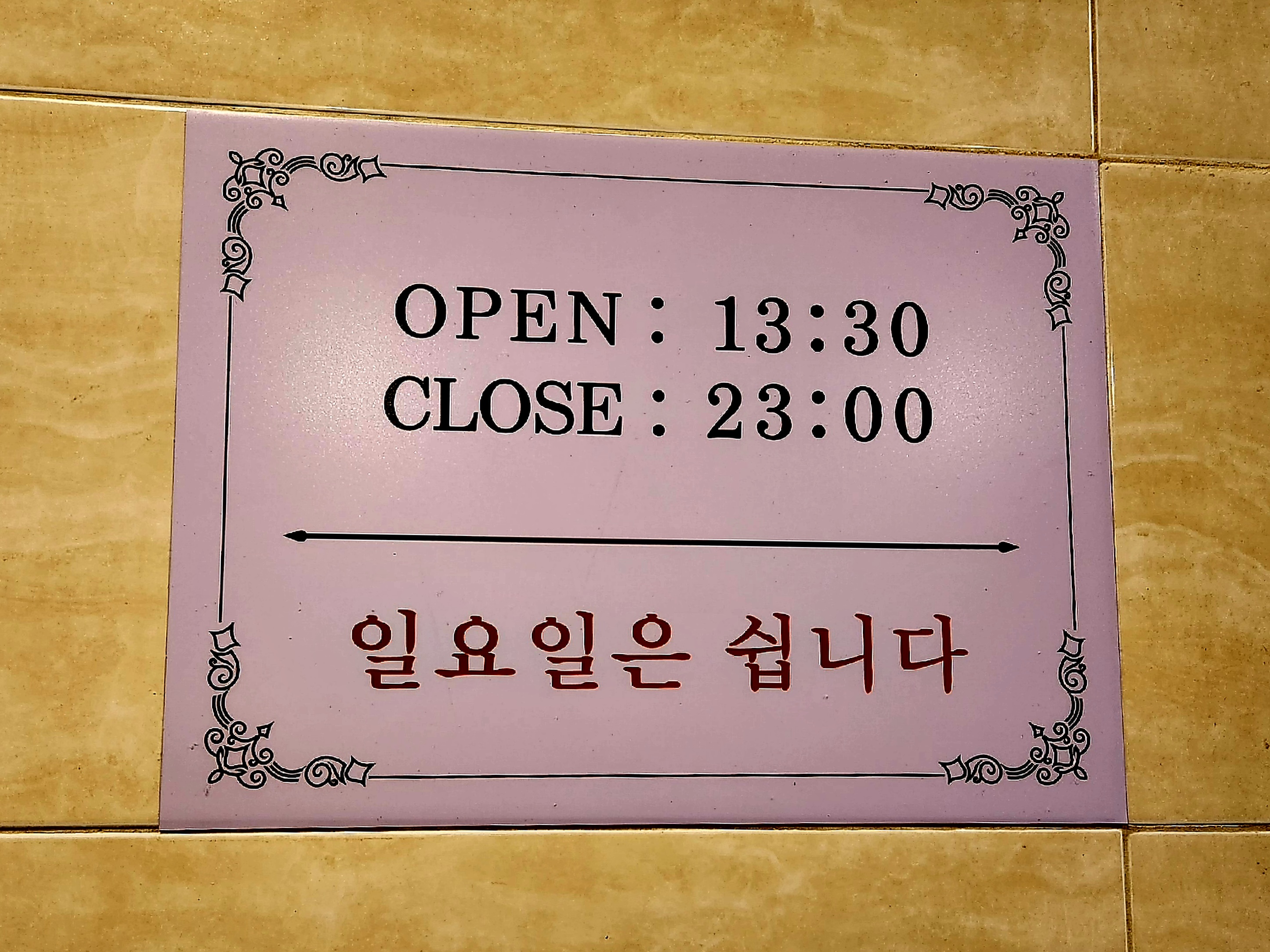 오후 1시 30분 ~ 저녁 11시(일요일 휴무)