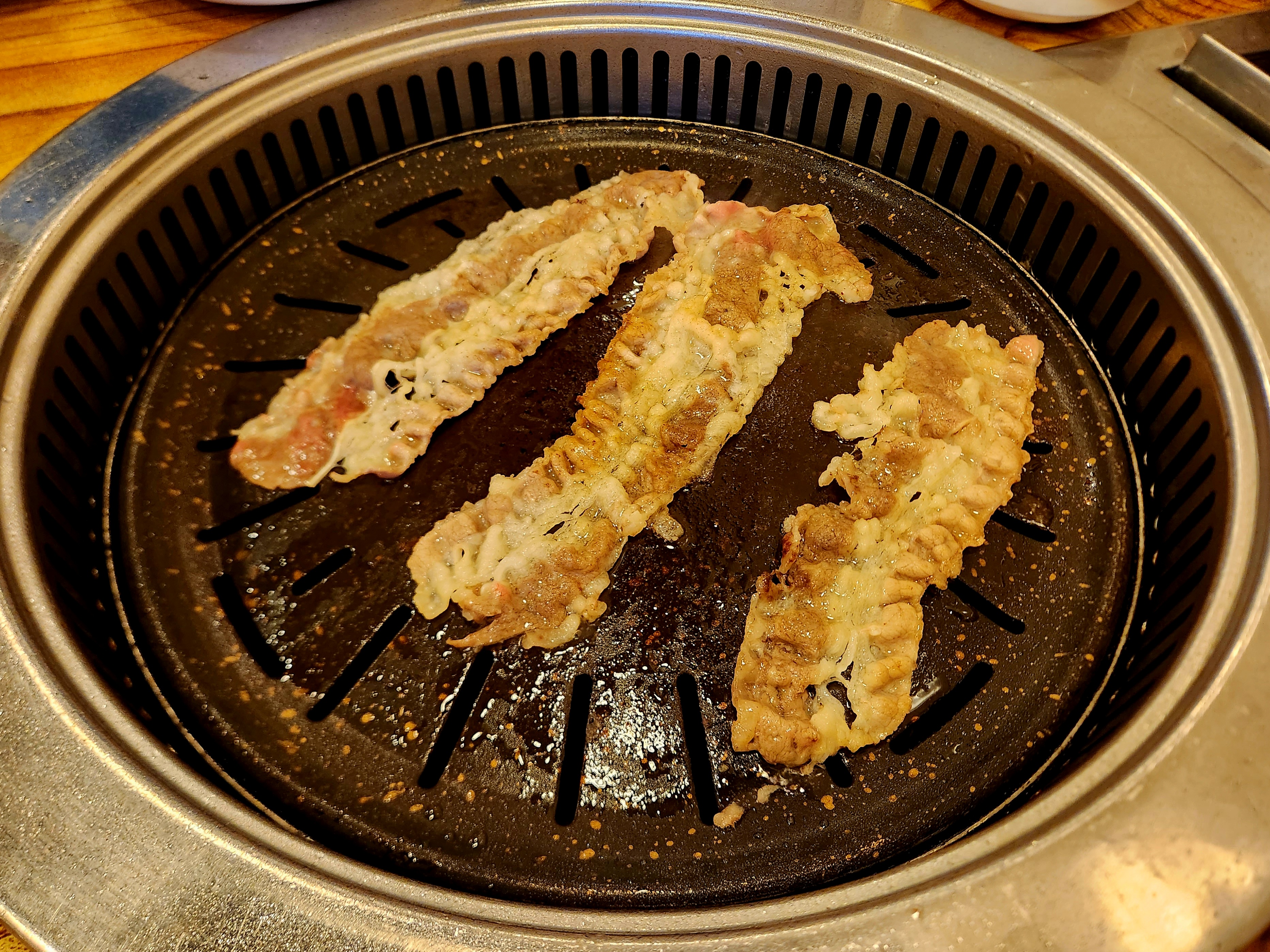 제일 위에 있고 빨리 익는 우겹살 먼저 올렸습니다~