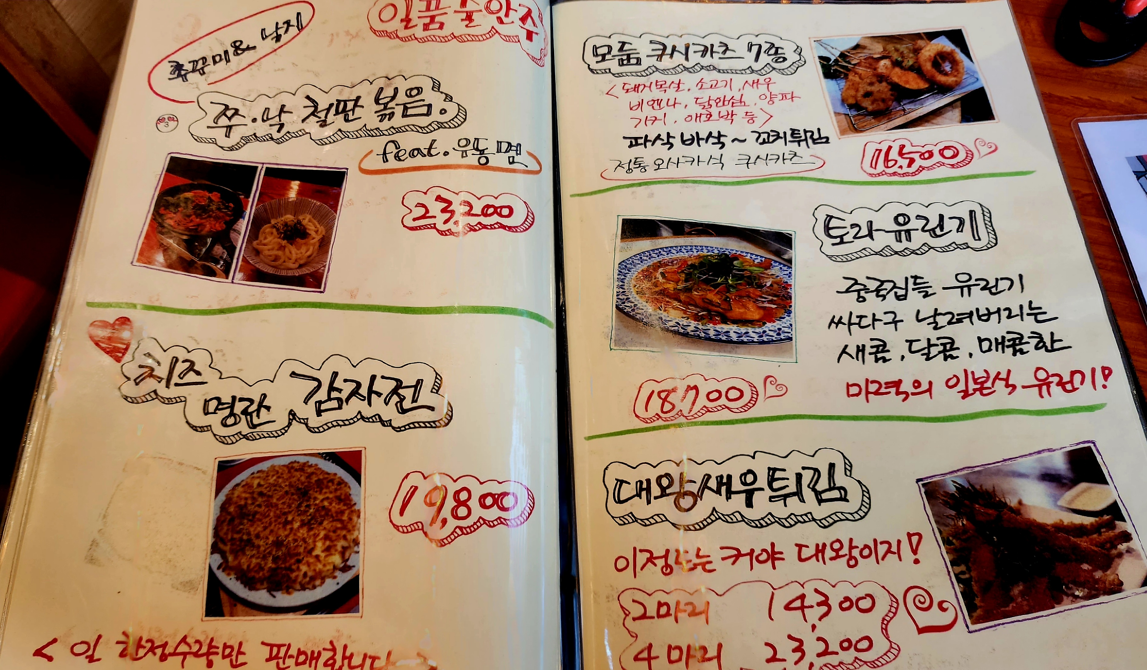 다음에 방문한다면 해물은 제외하고 와규와 낙지주꾸미철판 그리고 치즈명란감자전만 먹어도 좋을 듯합니다~
