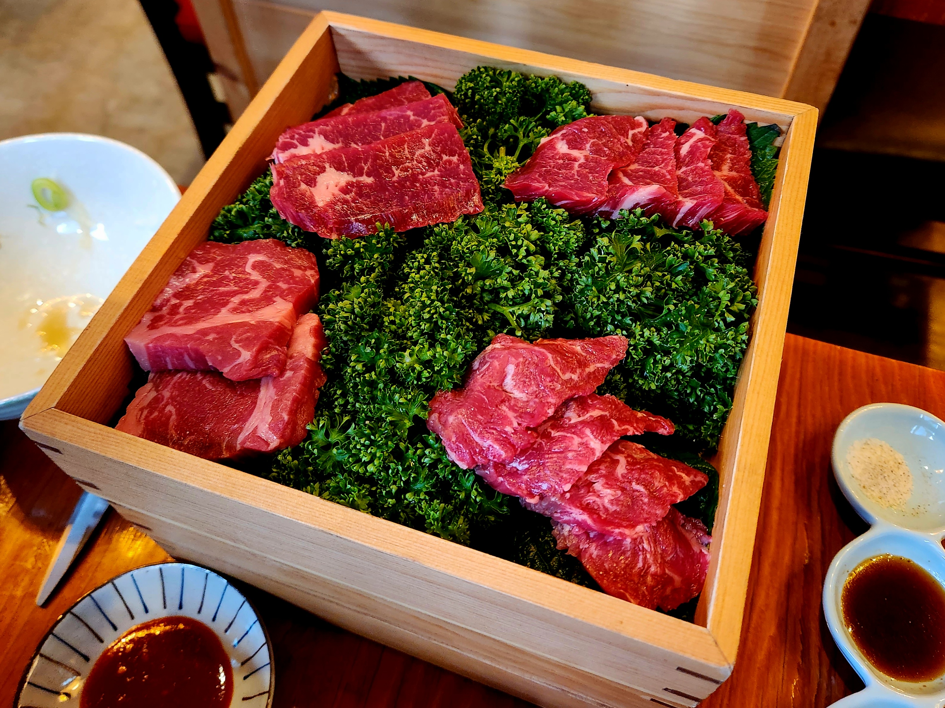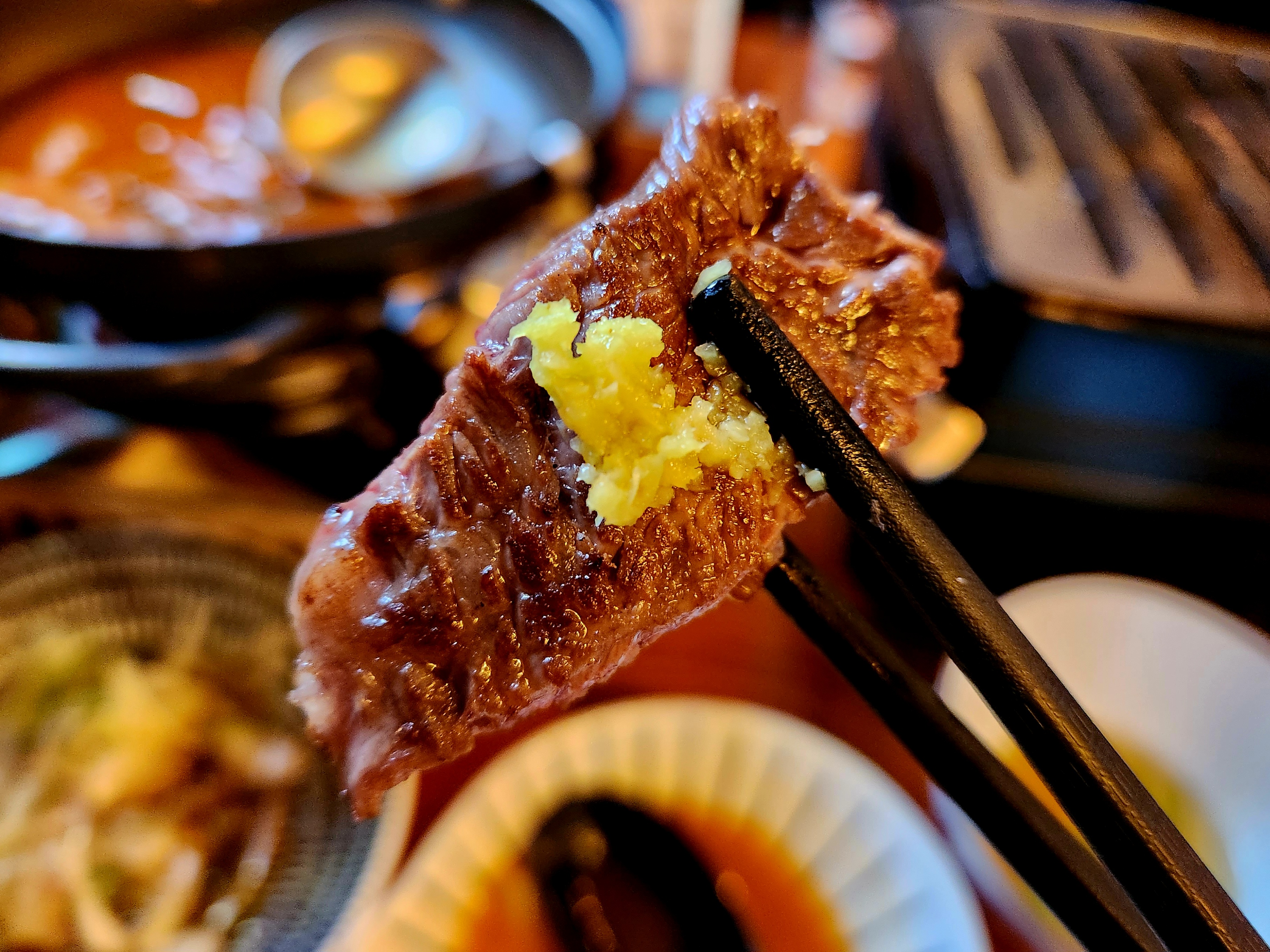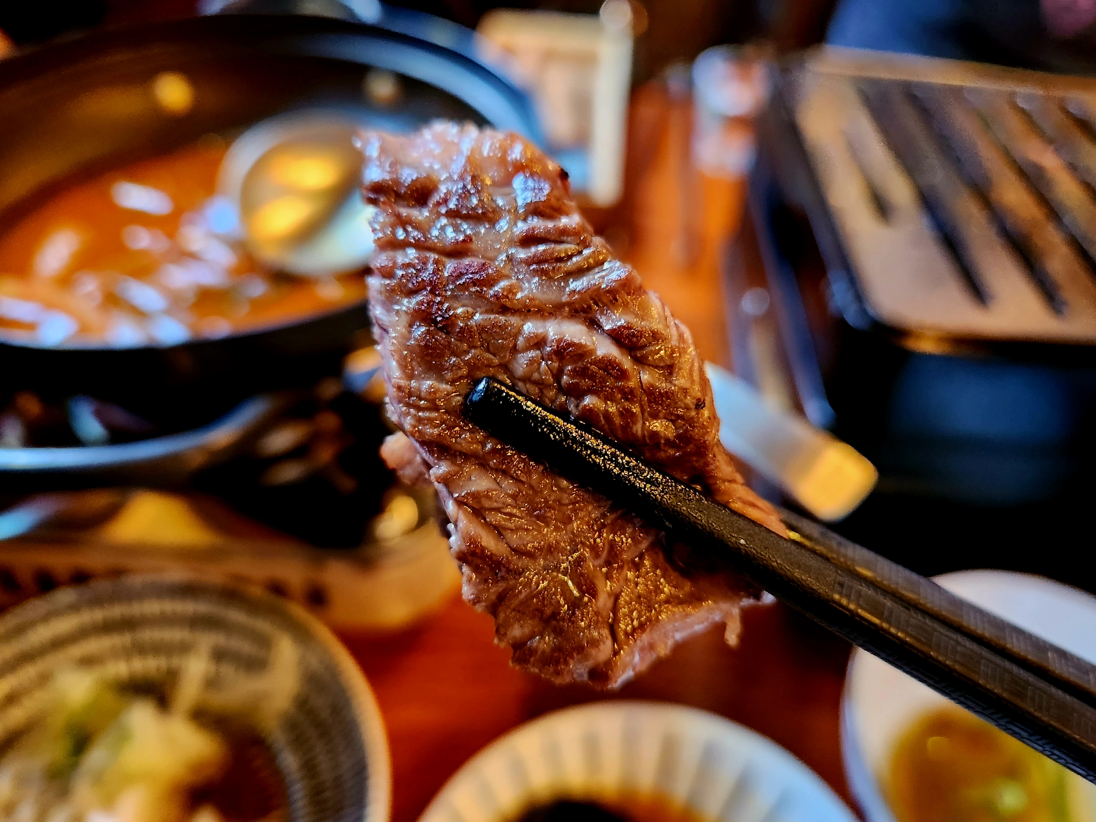 배고프니 우선 불판에 올라간 와규~ 어디 부위인지는 모르겠고요~
