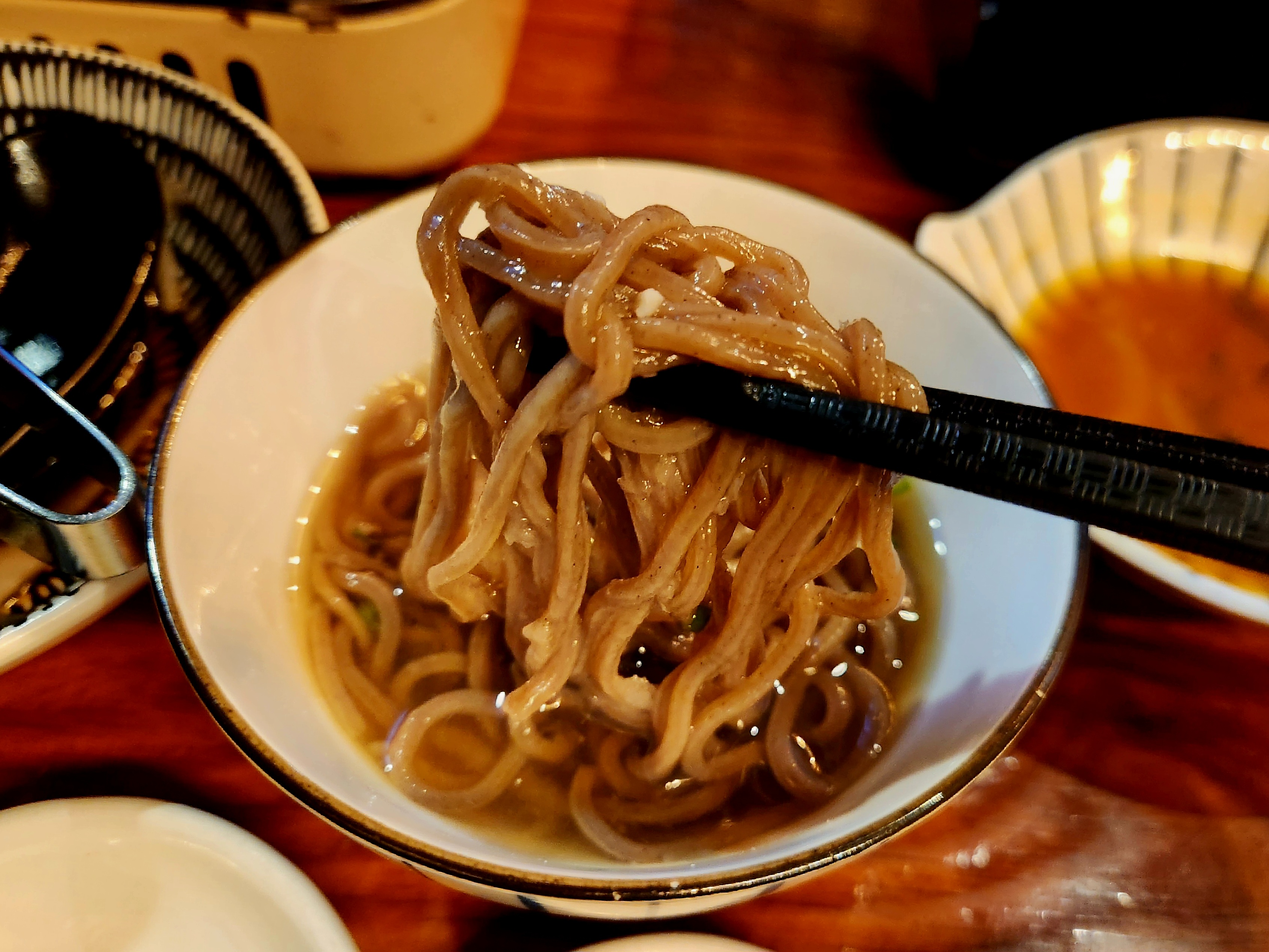 두 번째 판을 다 먹고 나니 냉모밀도 서비스로 주셨습니다~