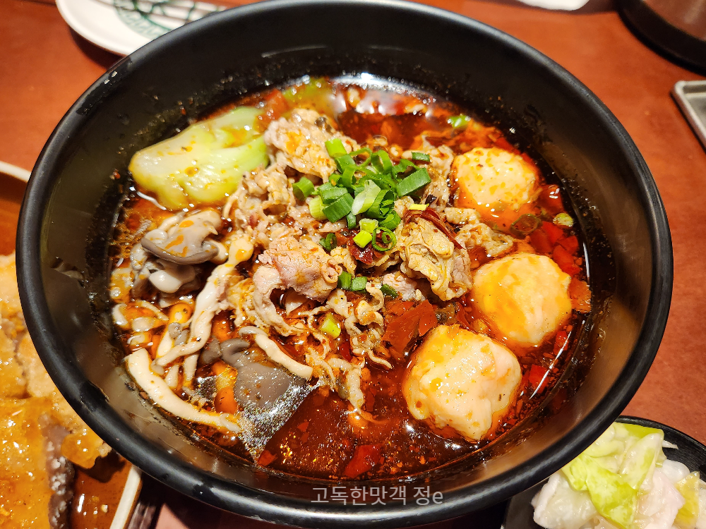 꿔바육 자르고 있는데 나온 매운 소고기탕면~